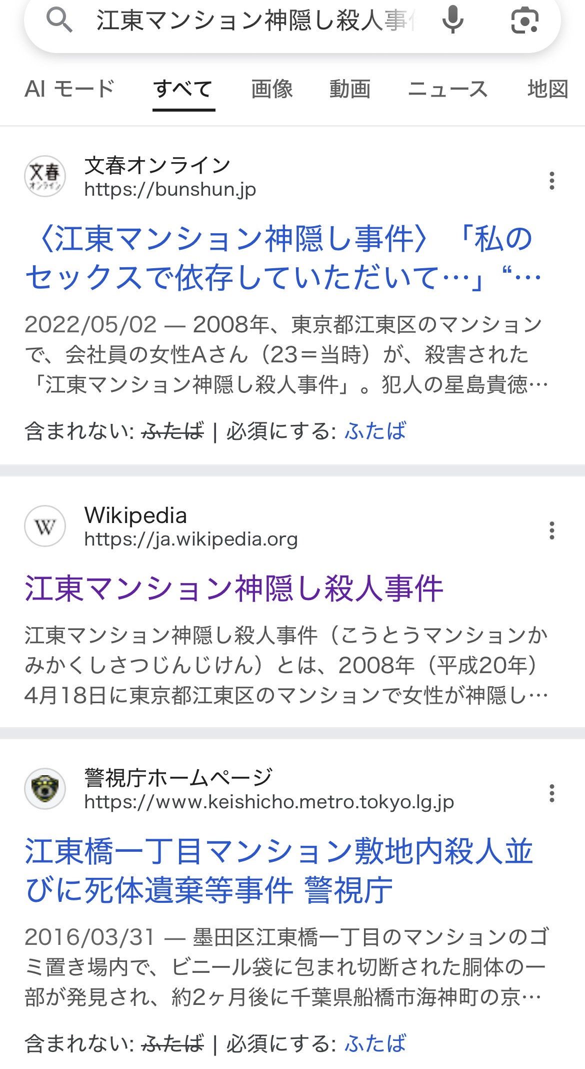 | … | 1326/01/18(日)19:08:21No.1393736837そうだねx5江東マンション神隠し殺人事件の星島貴徳を知らないやつも出る時代か |