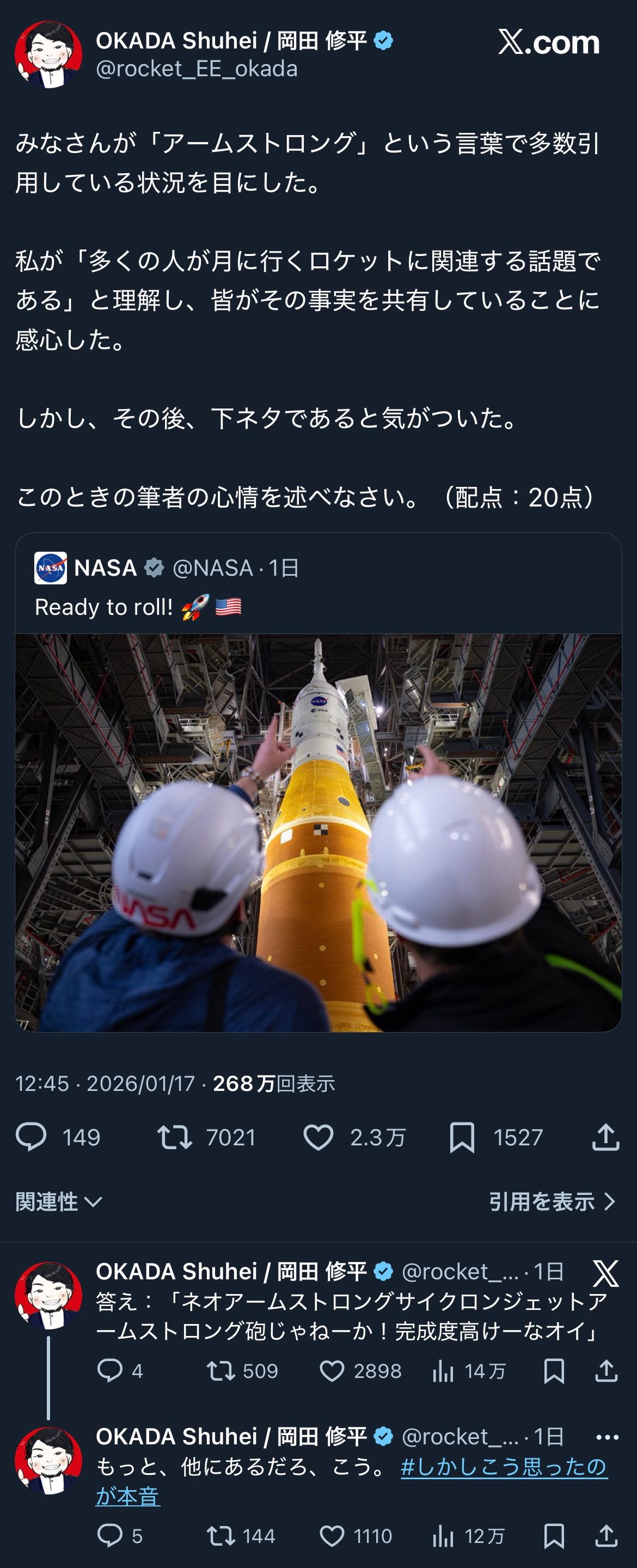 | … | 226/01/18(日)22:10:05No.1393813197+宇宙開発ってそういう… |