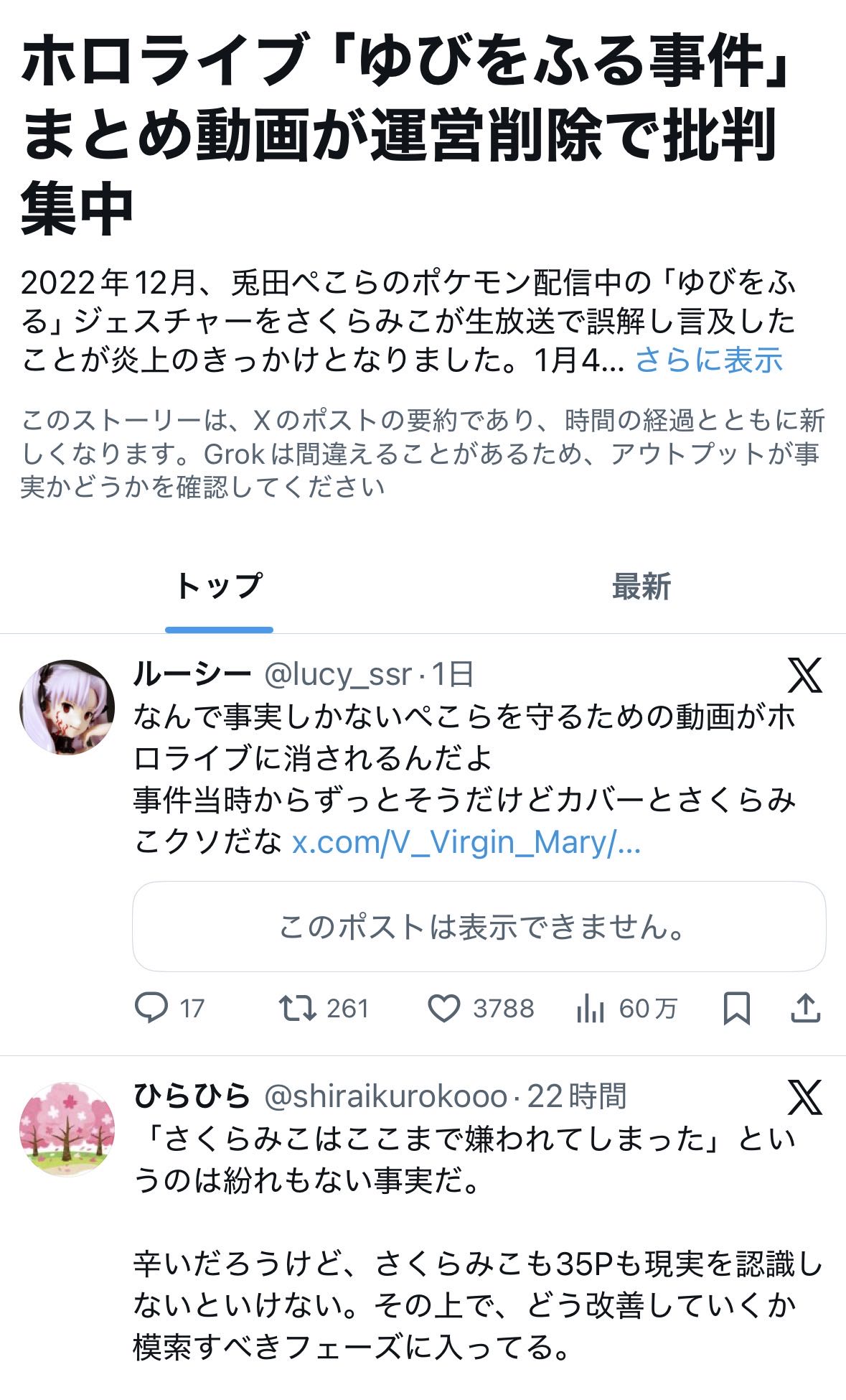 野うさぎ「なんで事実しかないぺこらを守る動画がホロライブに消されるんだよ」