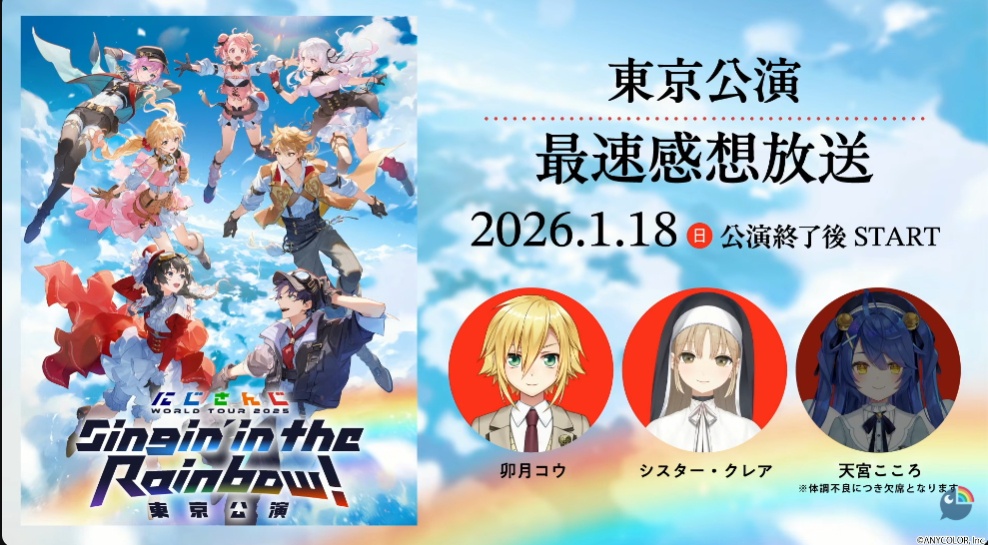 | … | 4626/01/19(月)10:46:18No.1393920756そうだねx1>昨日の東京公演はいかがでしたか? |