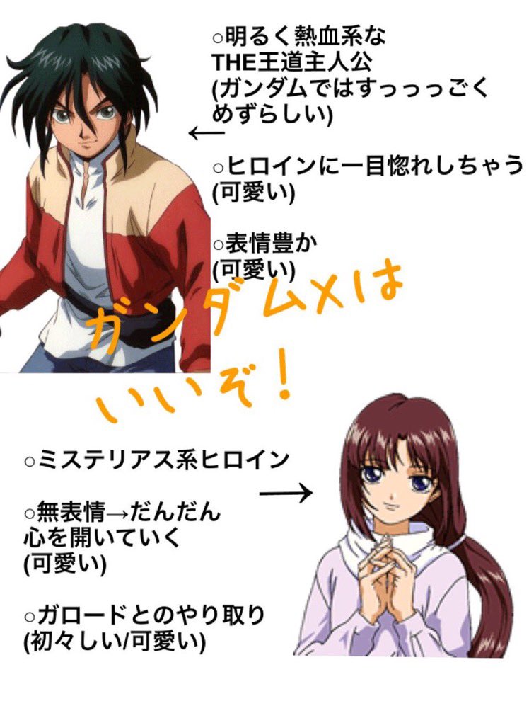 | … | 9426/01/19(月)12:20:32No.1393939625+Xは全体の軸にガロードとティファの恋愛を通した成長が存在するからね |