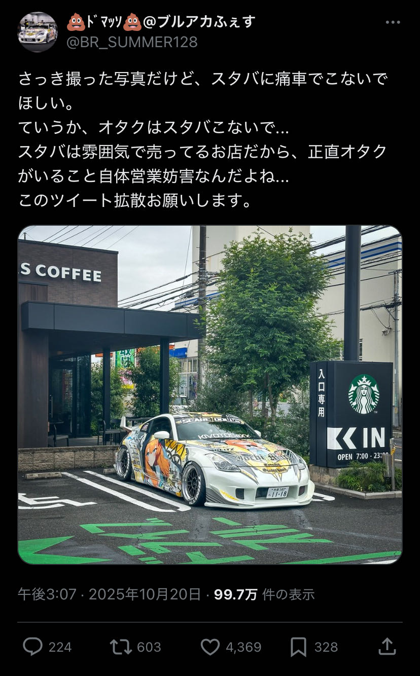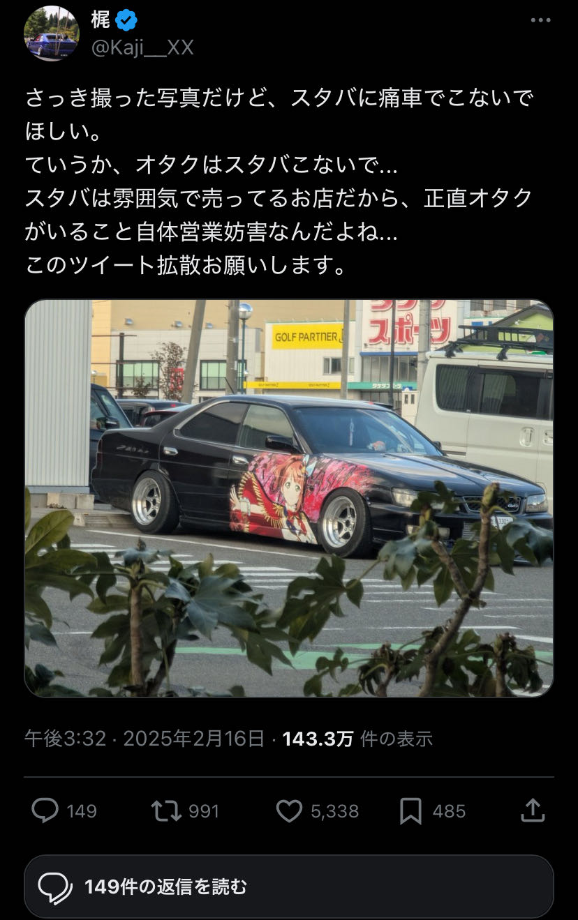 | … | 2426/01/19(月)19:00:02No.1394034860+>自己主張の強いキモオタだから気持ち悪いよね痛車 |