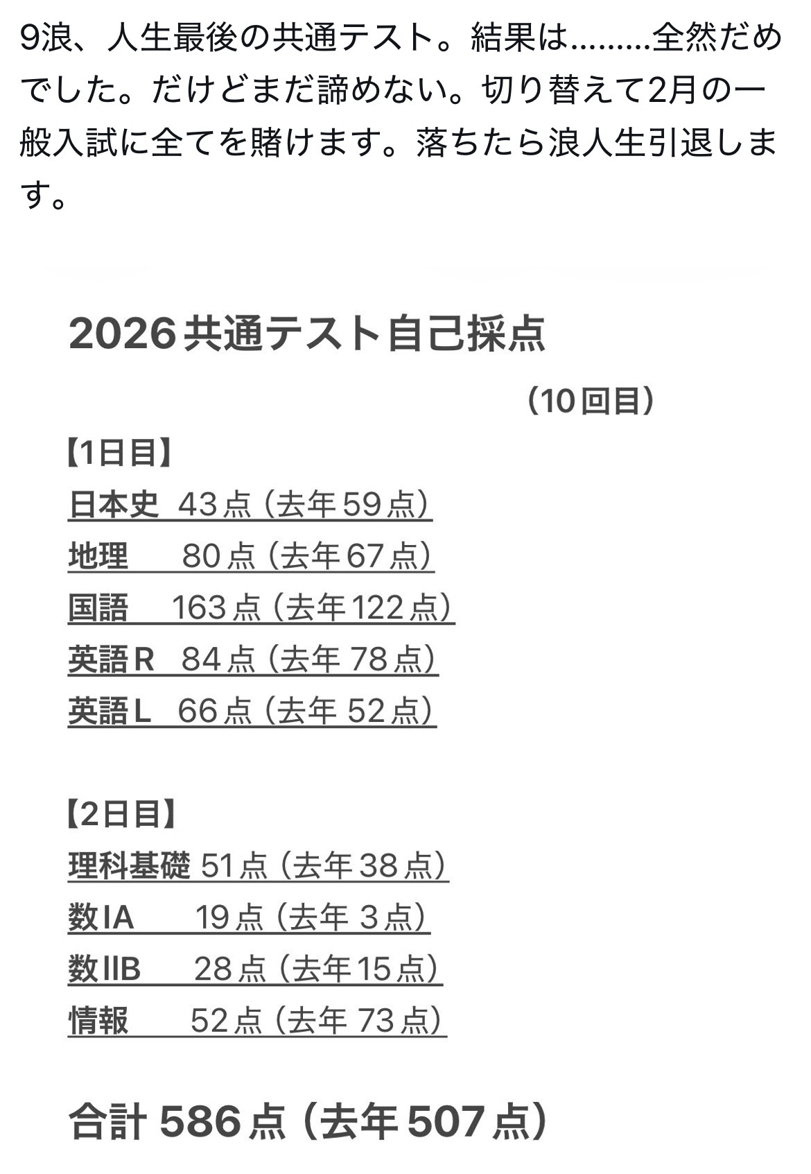 | … | 926/01/19(月)19:16:25No.1394040180そうだねx45>9浪でこの点数ってすごいの? |
