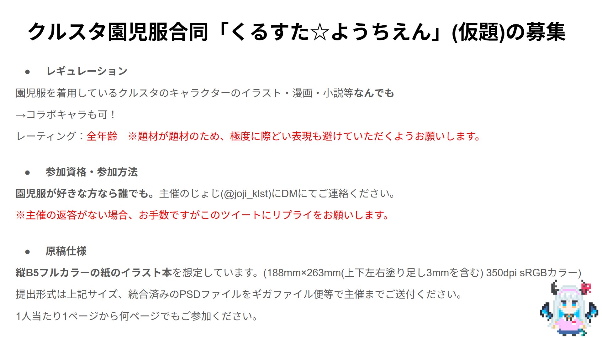 | … | 2726/01/19(月)21:12:58No.1394086706そうだねx10>クルスタ園児服合同誌 え………!? |