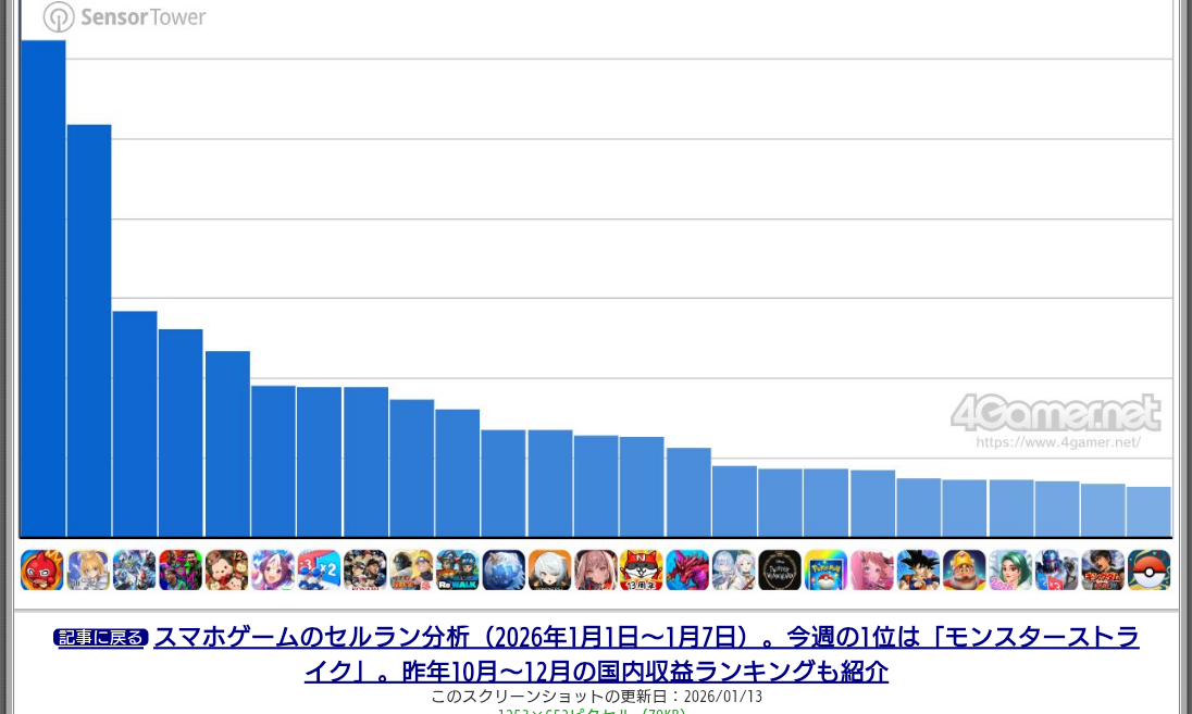 | … | 18026/01/20(火)02:15:43No.1394178669+なんとなくのイメージで「今も1番売れてるのはモンストとパズドラ」って思ってたけど |
