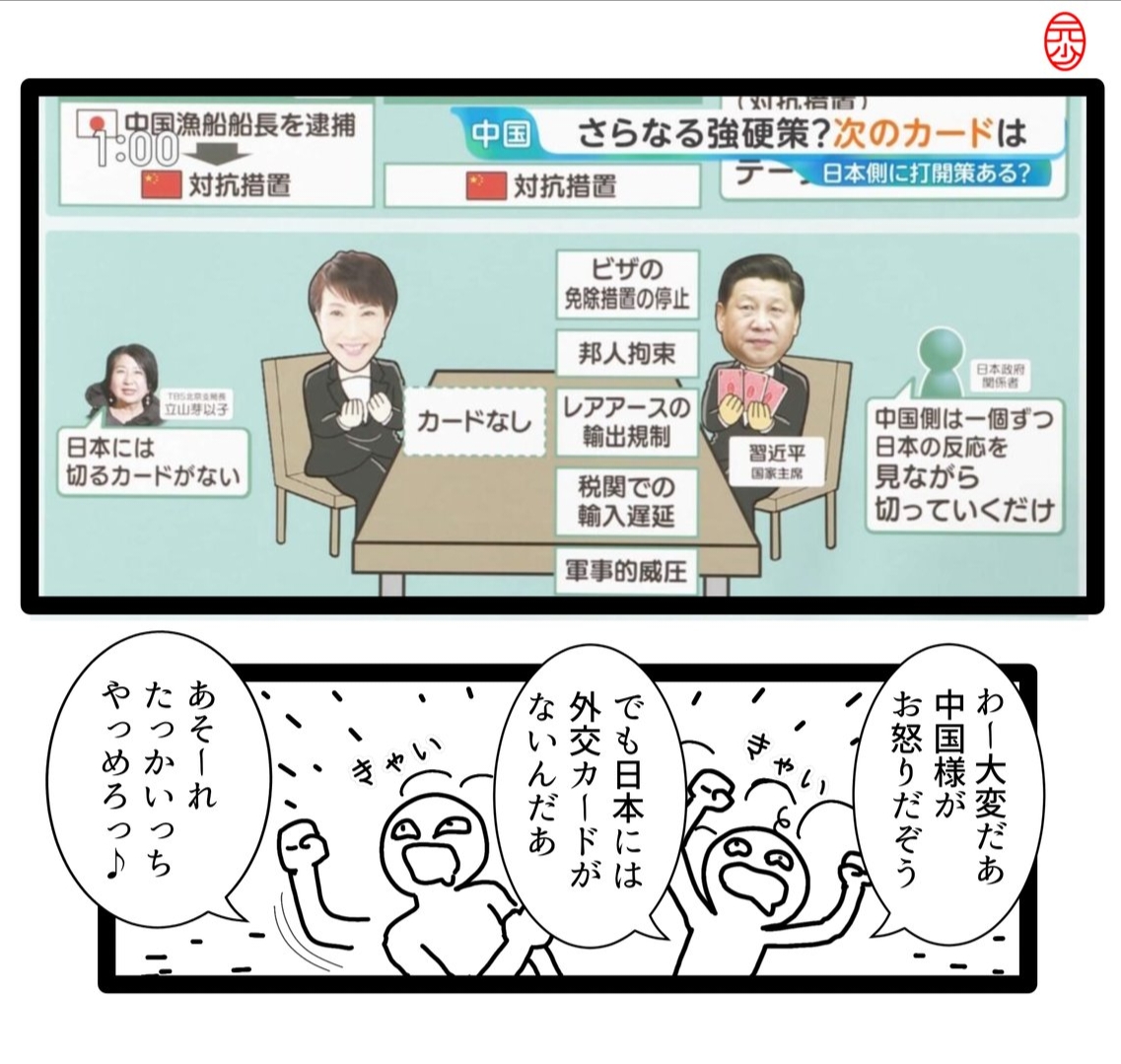 | … | 326/01/20(火)15:37:59No.1394278136そうだねx5ぜんぶ切っても支持率落とせなかったから中国の負けだよ |