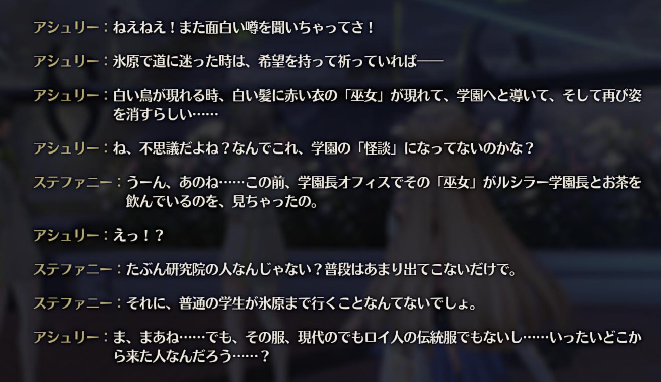 | … | 22826/01/21(水)11:32:53 ID:PyQUGD6wNo.1394503783+>穂波のNPCが言及してた葦ノ原の歳主共鳴者の巫女さんっていまラハイロイに来てるっぽいけどもしかしてサプライズ実装枠チン? |