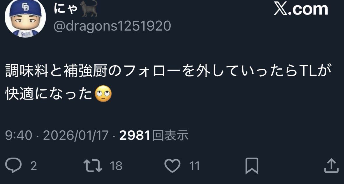 | … | 26226/01/21(水)16:21:40 ID:1j2GtDVwNo.1394564358そうだねx1調味料はアレだけどSN一塁で使うは調味料じゃなくても絶望感あるゾ |
