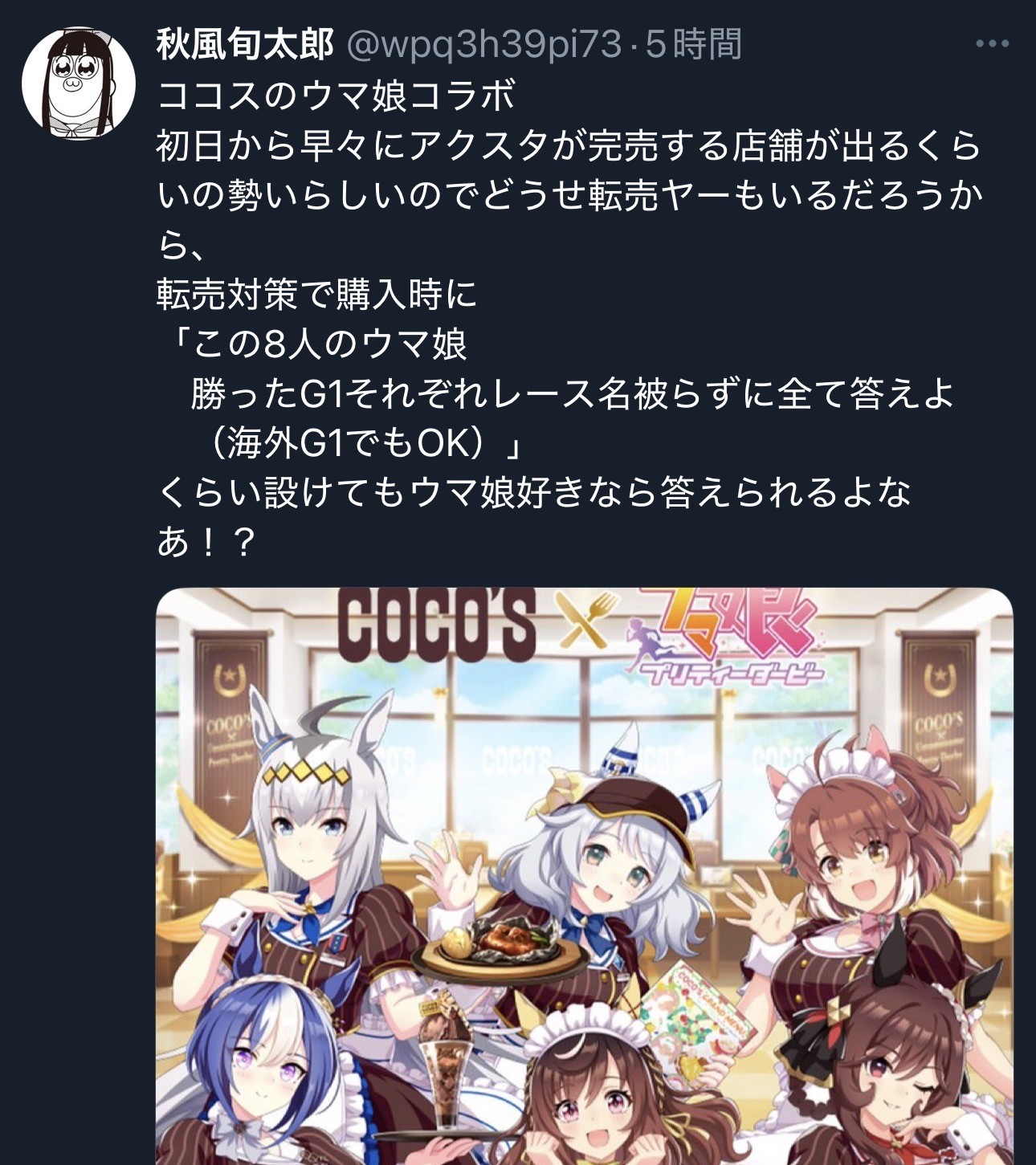 | … | 10226/01/21(水)16:31:52No.1394566312+JRAがまずその発想はなかったコラボたくさんやってるからな… |