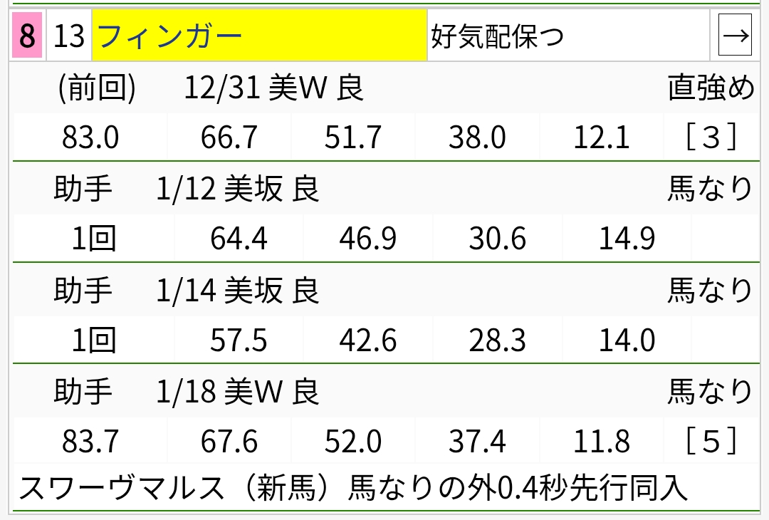 | … | 32026/01/21(水)20:54:59 ID:rTzqWAa.No.1394641659+去年の北国王冠の結果見たら11頭立てでシンガリ人気が2着に来ててダメでした |