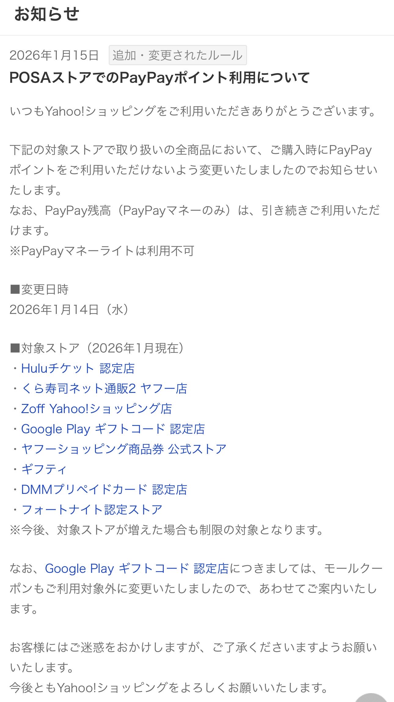 | … | 7426/01/21(水)19:17:34 ID:tscx.gzgNo.1394607446そうだねx1fu6195211.jpg ごめんなさいにゃん ヤフーショッピング直近で期間限定ポイントの消化大改悪されてたにゃん…… |