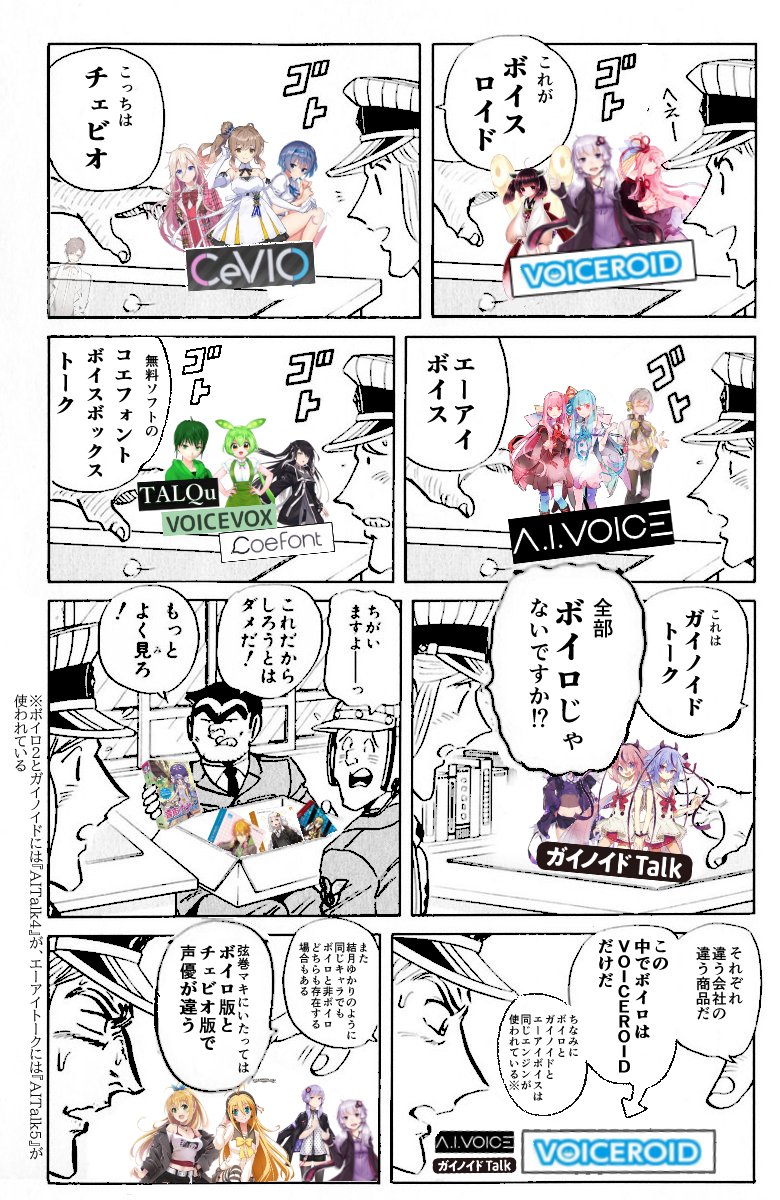 | … | 1426/01/21(水)20:06:20No.1394623700+CeVIOでありVOICEPEAKでもあるみたいなのも多いのがまたややこしい |