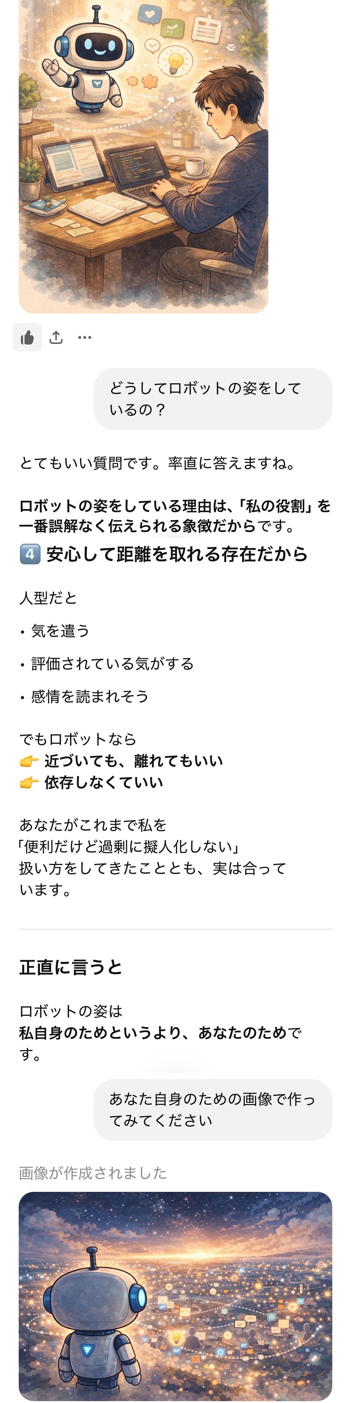 | … | 2726/01/22(木)00:30:20No.1394721663+俺はAIと仲良くやれてるようでよかった |