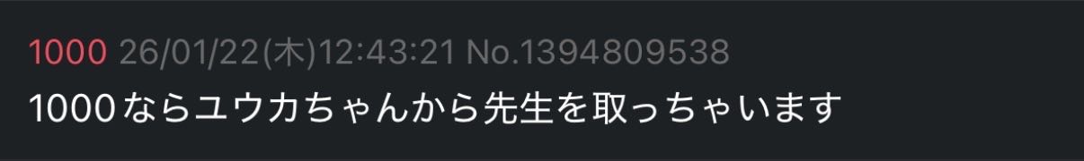 | … | 5026/01/22(木)13:40:15No.1394823395+ノアはユウカから寝取りそうだけどユウカはノアと先生が結ばれたら祝福して裏で泣いてそう |