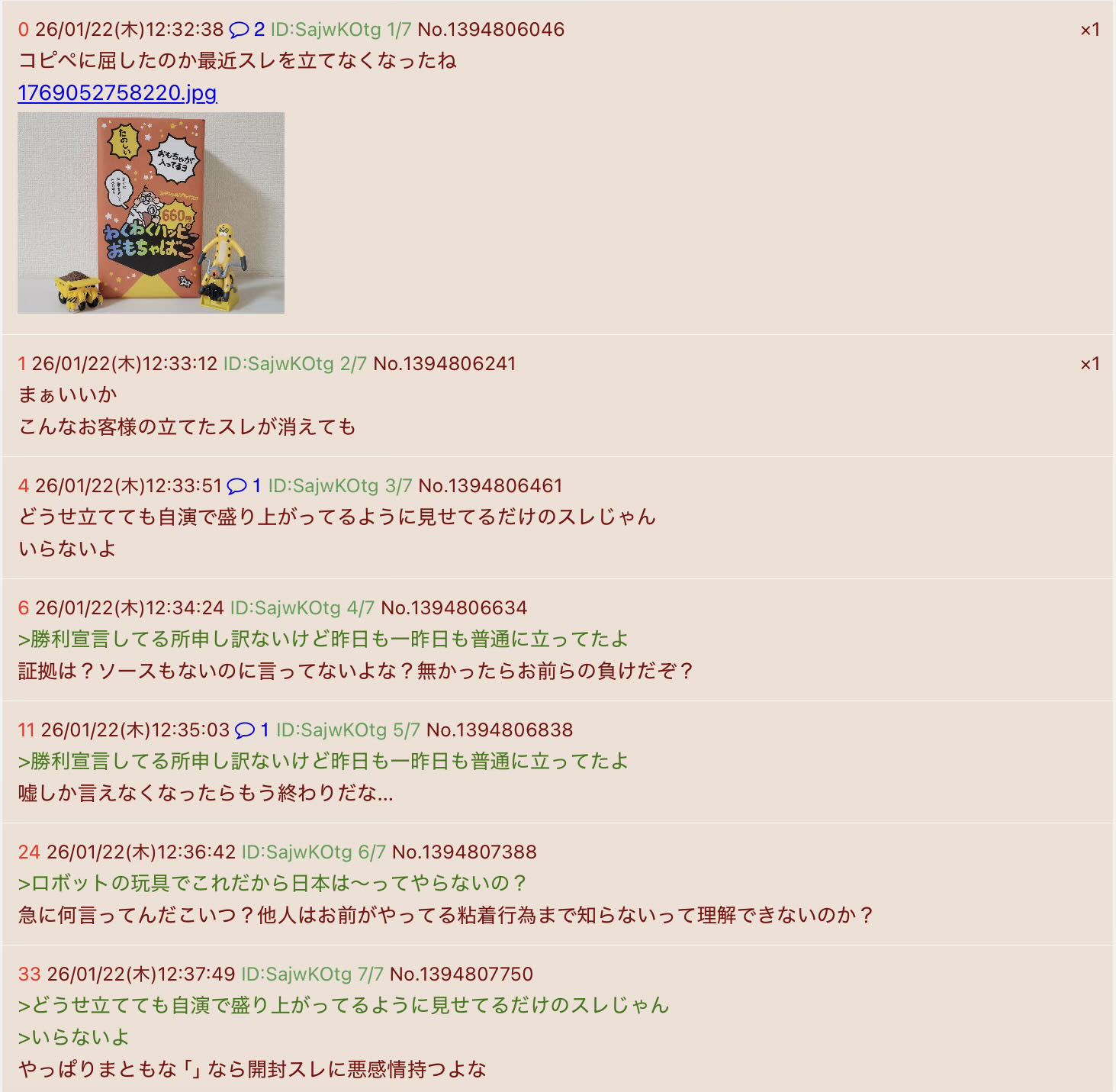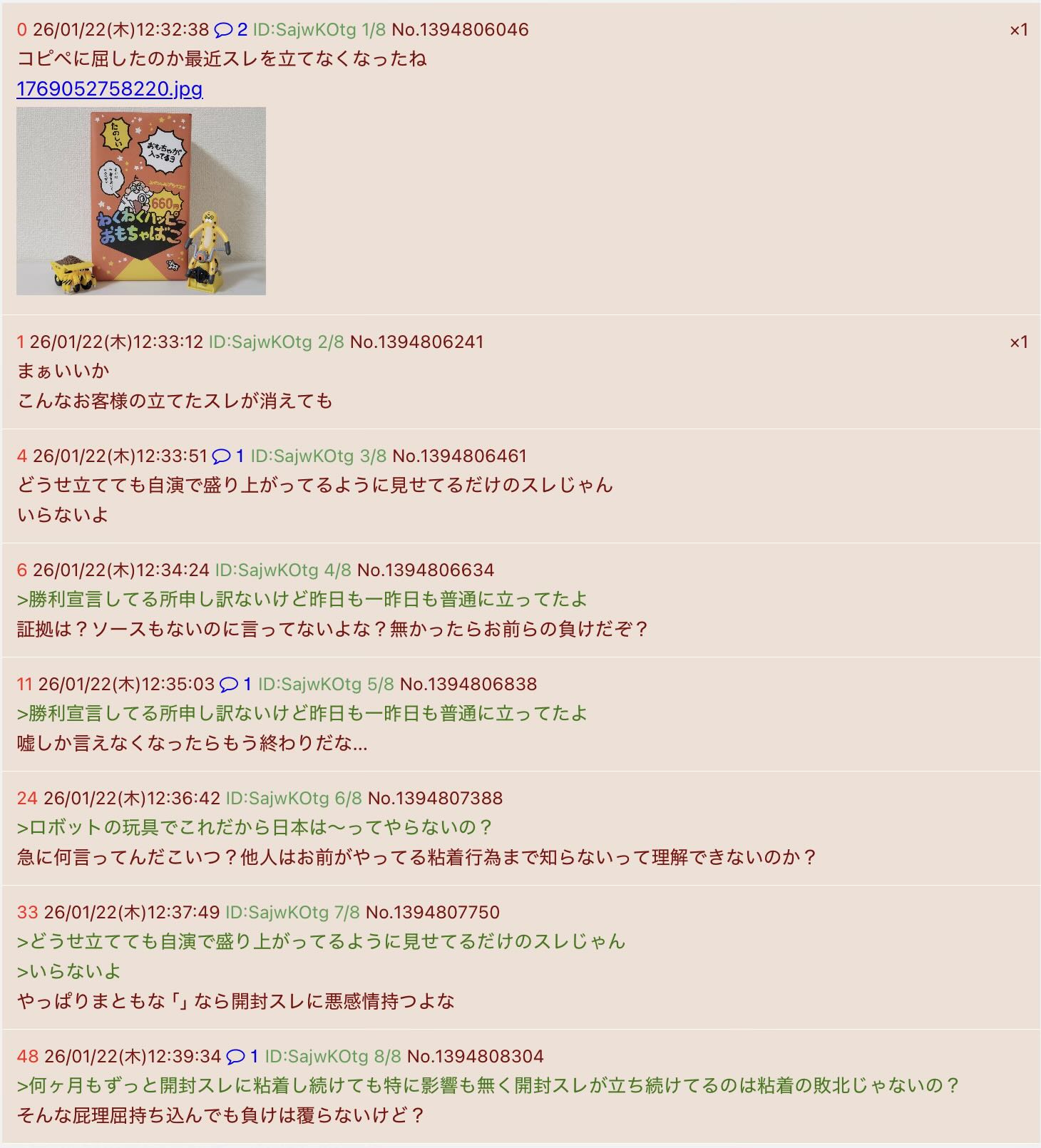 | … | 11626/01/22(木)15:10:55No.1394840145+いつもの知恵遅れが立てたアンチスレdel |