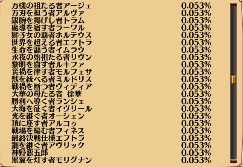 | … | 11126/01/22(木)15:44:30 ID:PWgBsSwkNo.1394846852+英傑3人だったけど全英傑持ってるから感動がないぜ |