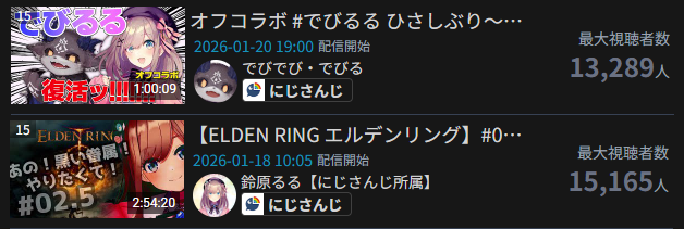 | … | 2526/01/22(木)20:14:42No.1394914179+>よくわからんけど最大同接13,000は依然として大人気なのでは? |