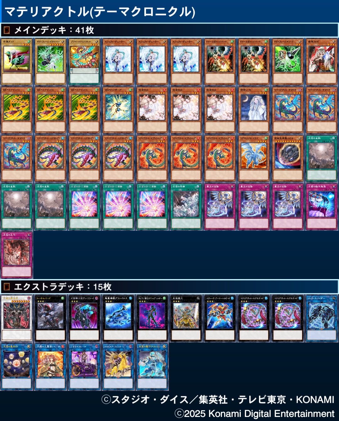 | … | 2826/01/22(木)22:41:25No.1394962062+>色んなギミックに触れるから拡張性高いんだけどサブの枠増やしすぎると純テーマとしての特色であるデッキトップや素材を弄くる動きがやりにくくなってくる |