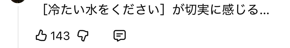 | … | 7126/01/23(金)03:35:07No.1395019931+冷たい水欲しがるのが切実過ぎる |