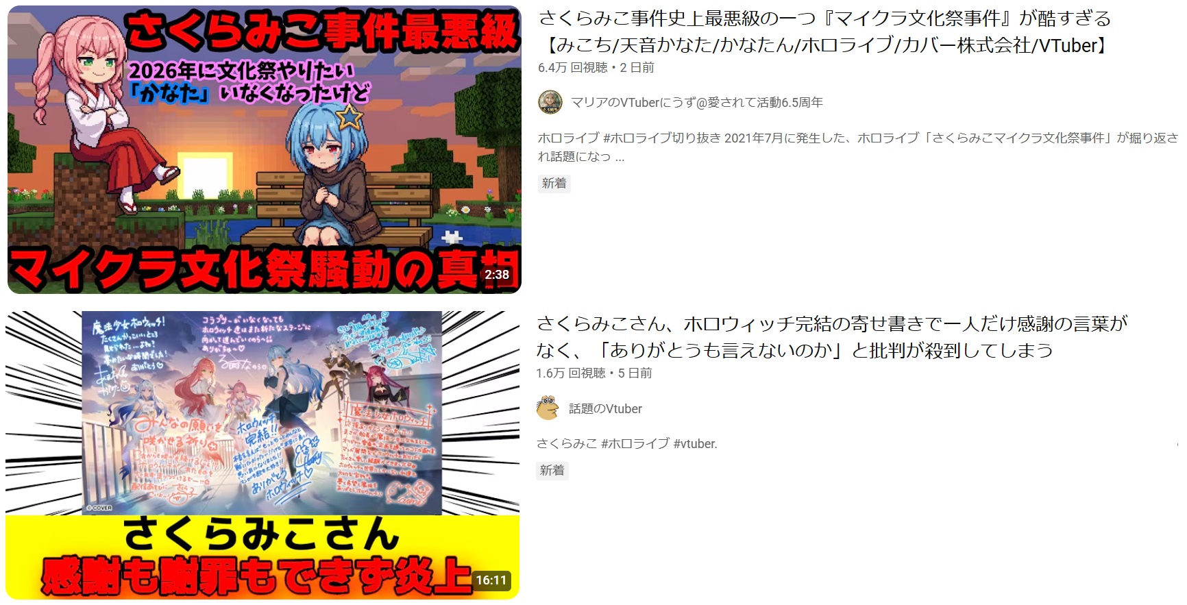 | … | 6926/01/23(金)01:30:16No.1395008177そうだねx17>申し訳なかったとか変な言い方じゃなくしっかり謝って半年くらい活動休止してればここまで炎上しなかった? |