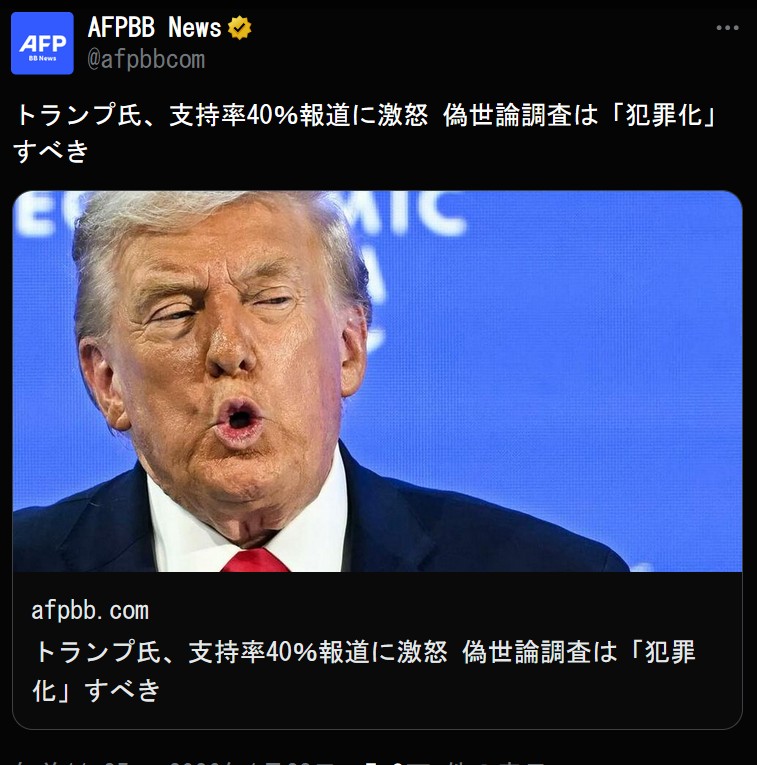 | … | 6126/01/23(金)16:25:31No.1395127964そうだねx15まあ40%は偽世論調査と思われても仕方ない |