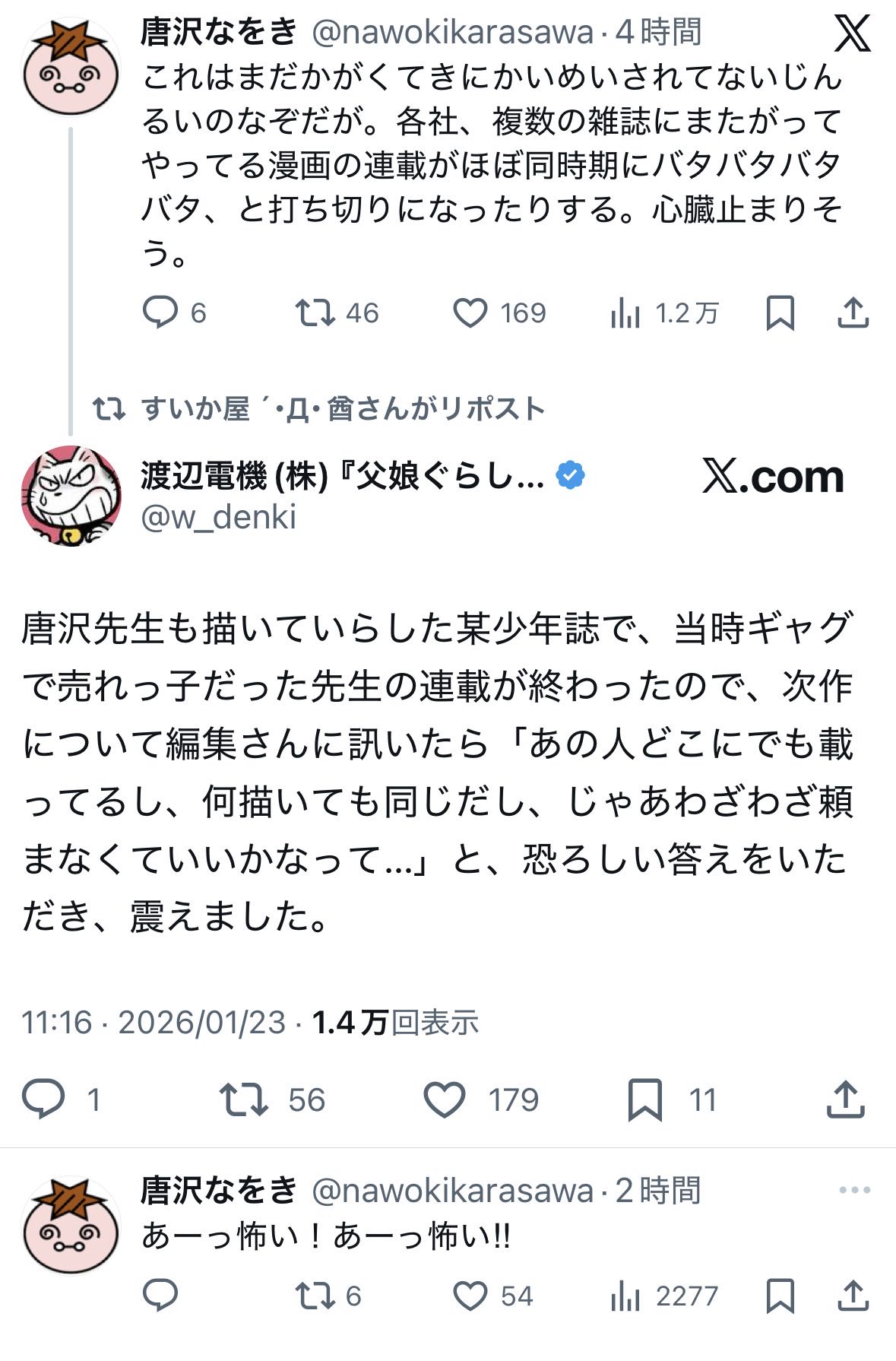 | … | 1226/01/23(金)14:53:51No.1395110425+各社複数にまたがってる連載ってどういう意味だろう |