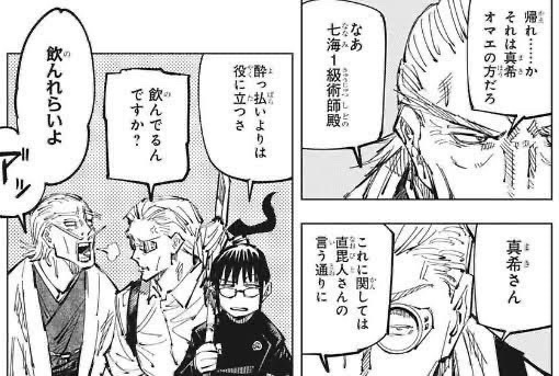 | … | 42826/01/23(金)21:21:24No.1395220385そうだねx3アニメ爺は禪院基準だとびっくりするくらい真希真衣(特に真希)に甘かったのが比較的まともに見える要素だと思う |