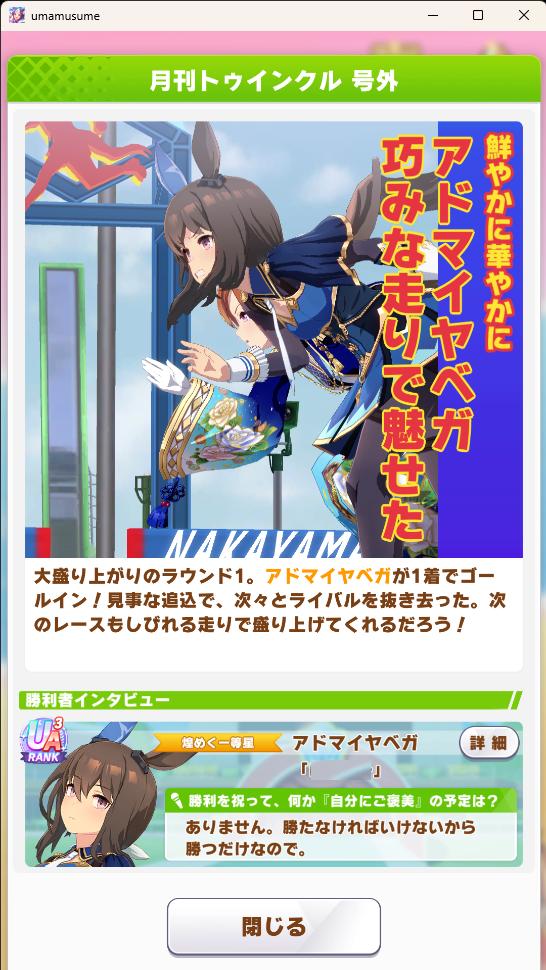 | … | 21226/01/23(金)22:01:30 ID:vWg9SsikNo.1395236783そうだねx1長距離はスピードの差がよく出るのでスピードはカンスト欲しいです |