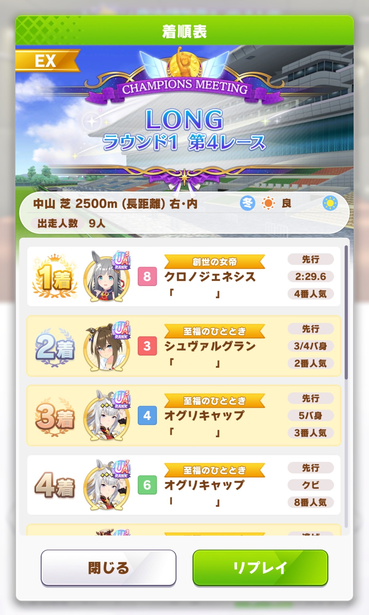 | … | 20826/01/23(金)22:00:38 ID:BdpZAASINo.1395236451そうだねx1>他の方が出した大逃げを利用して勝ってるパターンも結構あるので必ずしも有効だとは思わないんですよねあれ |
