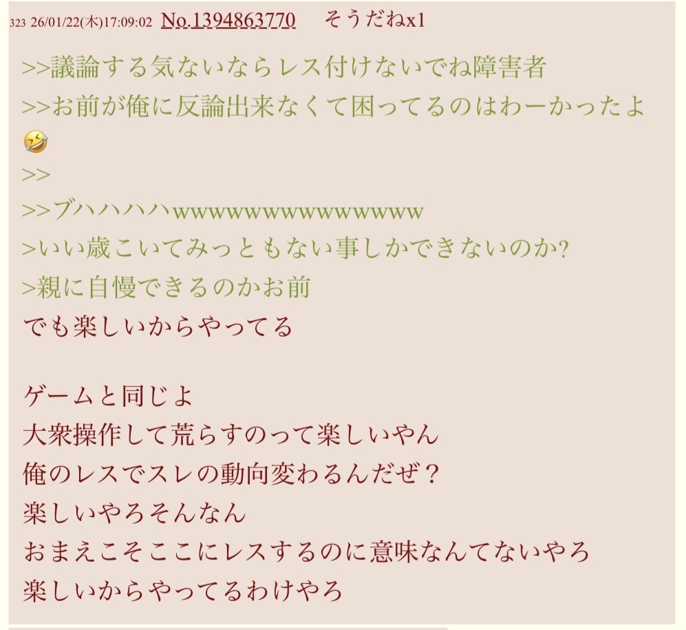 | … | 21326/01/23(金)23:23:31No.1395270422そうだねx4実際荒らしとされてる方が論理的なんだよな |
