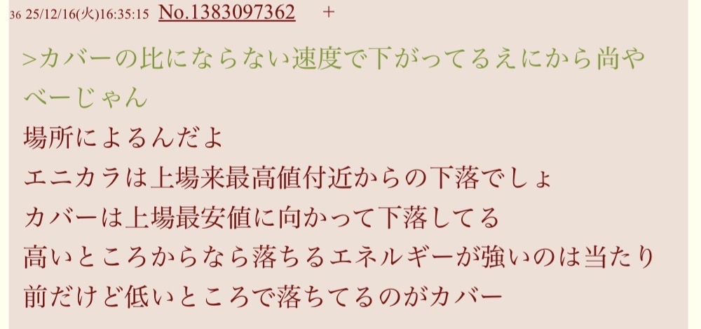 | … | 22226/01/23(金)23:24:34No.1395270848+>id出たままいっぱいレスしてるのが恥ずかしいと思う文化なのか知らないけど |