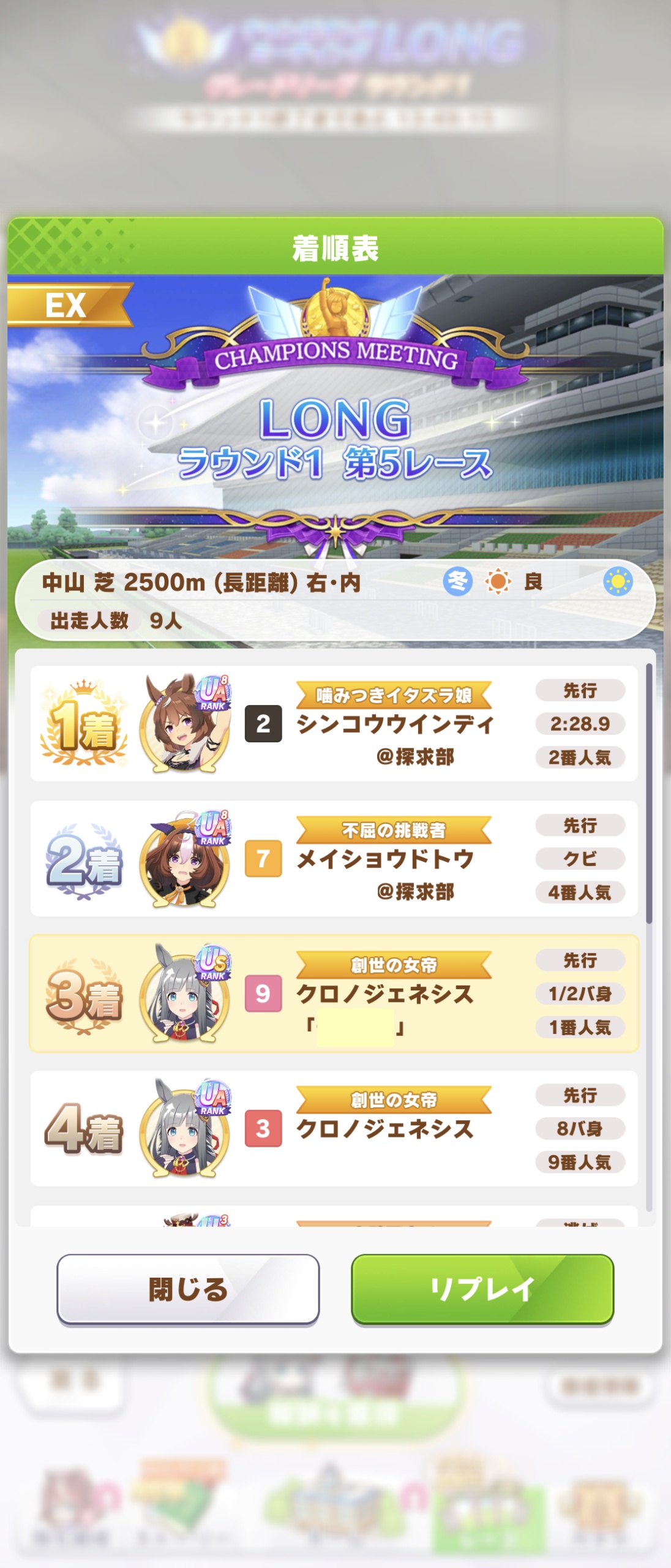 | … | 6326/01/23(金)22:39:58 ID:gBTJXo9.No.1395253080そうだねx1>クロノさんを倒すには水すばちかシン・オグリさんを出せば良いですよ 出してます!くコ:彡… |
