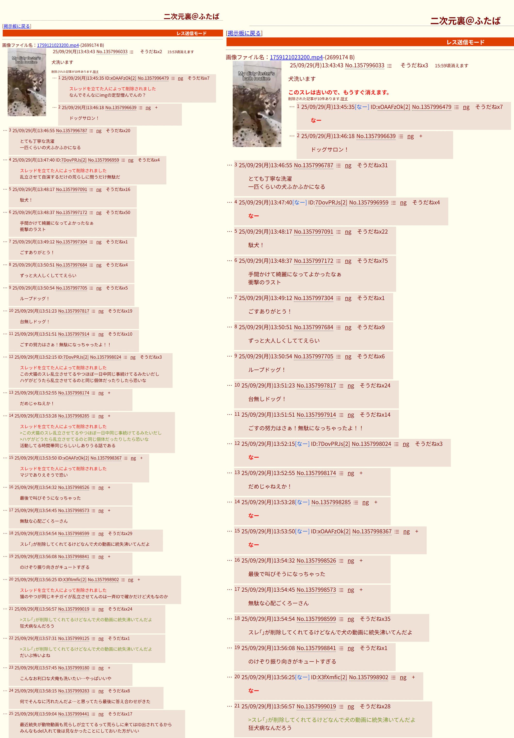| … | 4526/01/24(土)06:00:38No.1395319008+毛刈りショーめっちゃ出血してる |