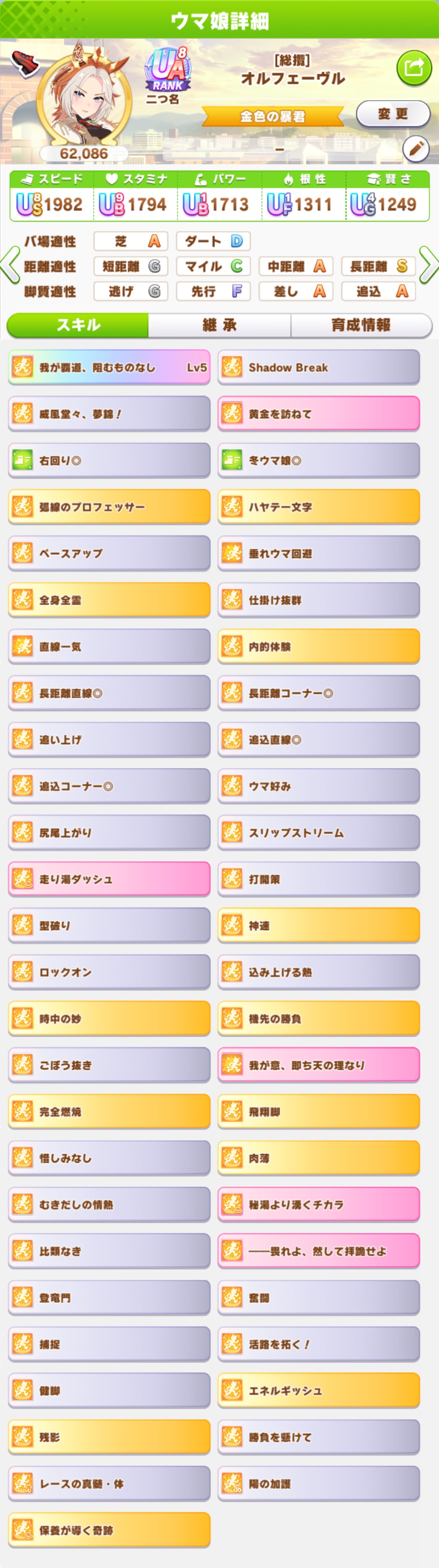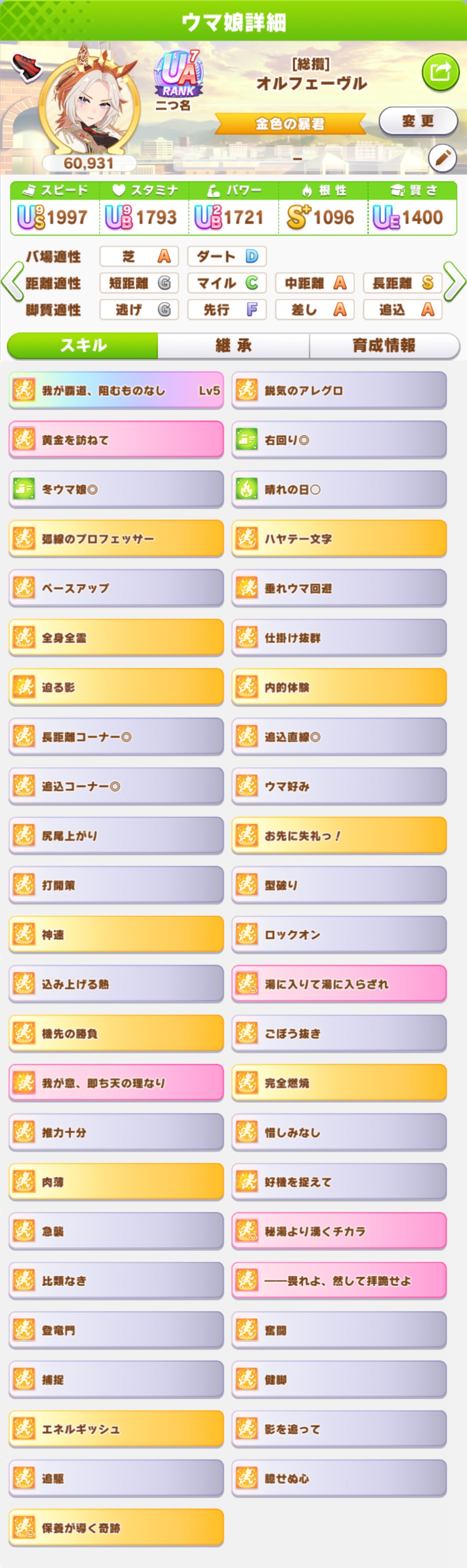 | … | 49126/01/24(土)13:54:36No.1395398509+育成終盤に一部だけヒント5でヒント未取得のスキルがゴロゴロしてるとあきらめる押したくなるのだ… |
