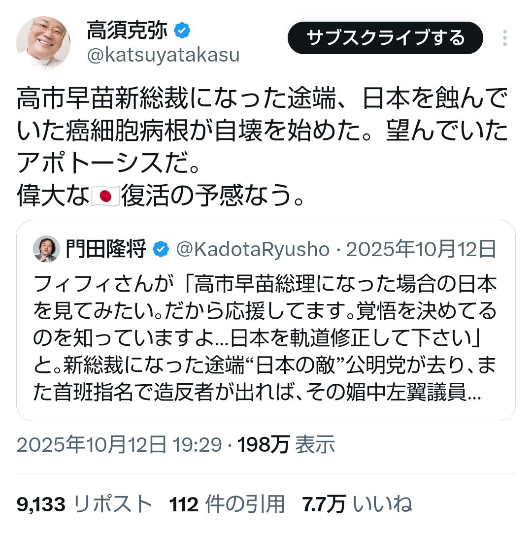 | … | 3326/01/24(土)21:58:32No.1395544062+https://x.com/katsuyatakasu/status/1977320738676973931?s=20 |