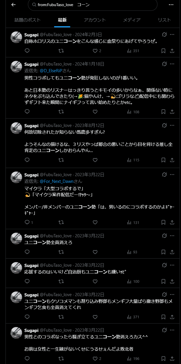 | … | 78726/01/24(土)22:52:31No.1395566968+>ホロライブというコンテンツにとっての自認ホロリスの対立煽りにじリスナーって |