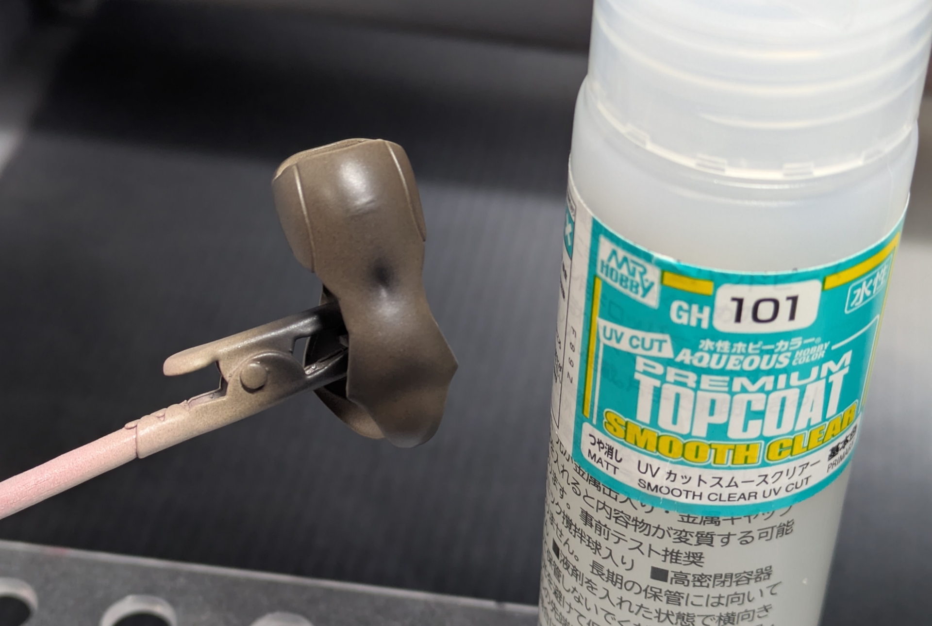 | … | 1726/01/24(土)23:01:19No.1395570340+ソウレイの胴体塗ってた 下地はキャラクターフレッシュ1だけどクリアーにマホガニー&ブラックだと黒すぎる?あと塗料の粒が大きく見えるのはクリアーが足りない?薄め液が足りない? あんま分からないけど楽しい fu6209025.jpg |