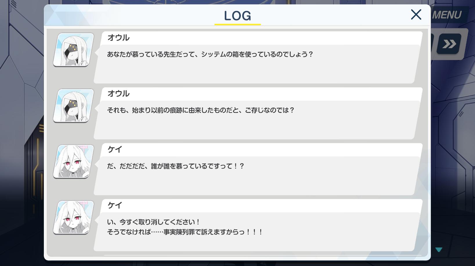 | … | 7326/01/25(日)00:40:23No.1395605890そうだねx2>"だまれ「プレイヤー」生徒には関係ないことだ" |