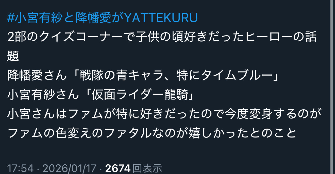 | … | 1726/01/25(日)09:41:37 ID:Zf5M8K9INo.1395670836そうだねx6アイドルプリキュアの最終回に被せて来たな… |