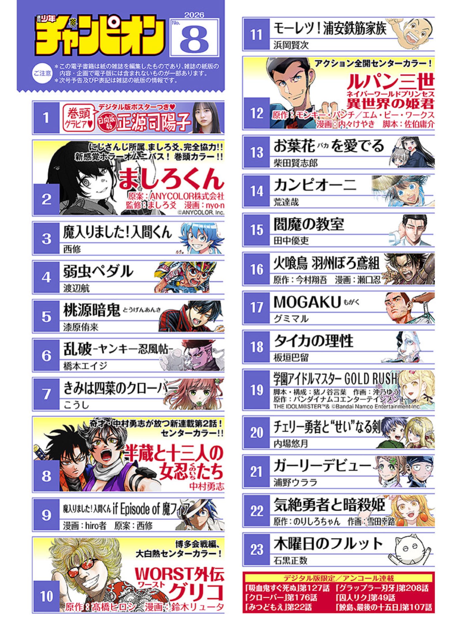 | … | 9726/01/25(日)10:51:11No.1395687510+チャンピオンBAZは読めるものも増えてきた |
