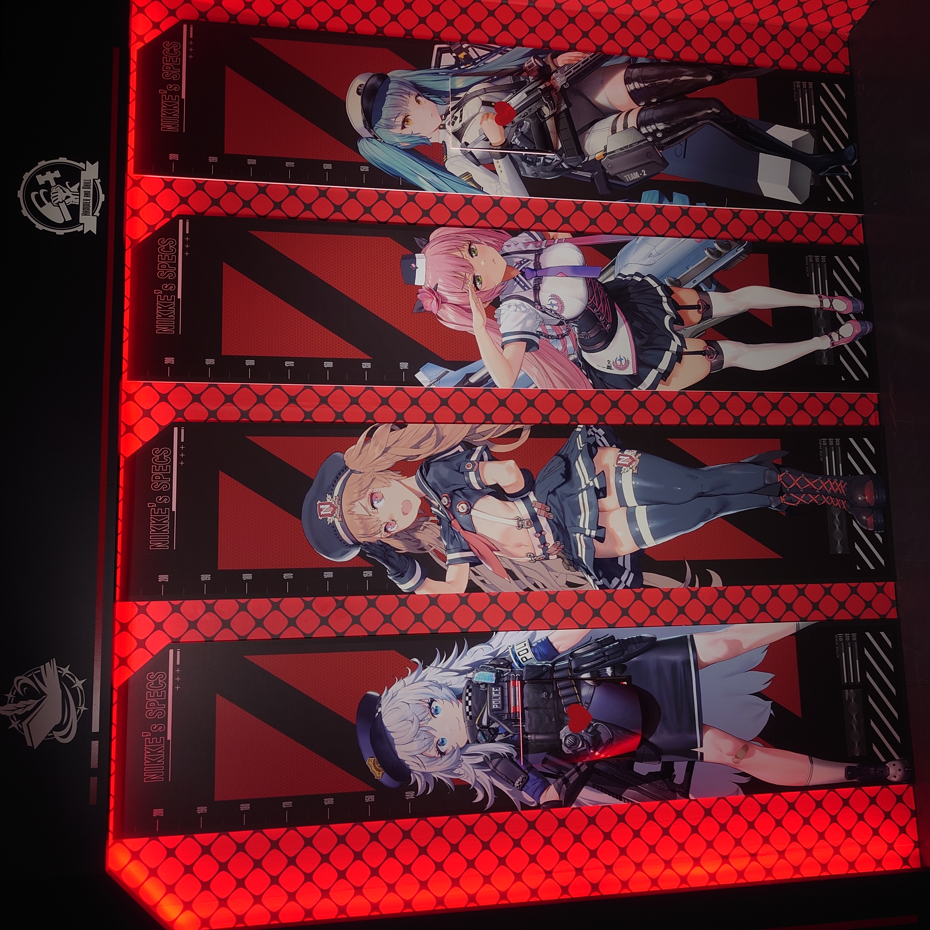 まずカーテンをめくると正面にボスたちのラフ画(撮影禁止)がバーンと飾られてるの というか鉛筆だけど書き込みすぎて何がラフじゃって感じなんだけどまあとにかくかっこよきメカ成分が多量に摂取できる30分潰せる で、次のカーテンをめくるとニケ勢揃いブース(撮影可) fu6210907.jpg fu6210911.jpg やっといた方がいいですよ…ナガのスカートめくりは…! 中身はコンセプト画と設定丸写しの半々くらいの確率 アズールレーンの人とかアークナイツの人とか居た 毛玉の初期案すごく好みでござった jpg |