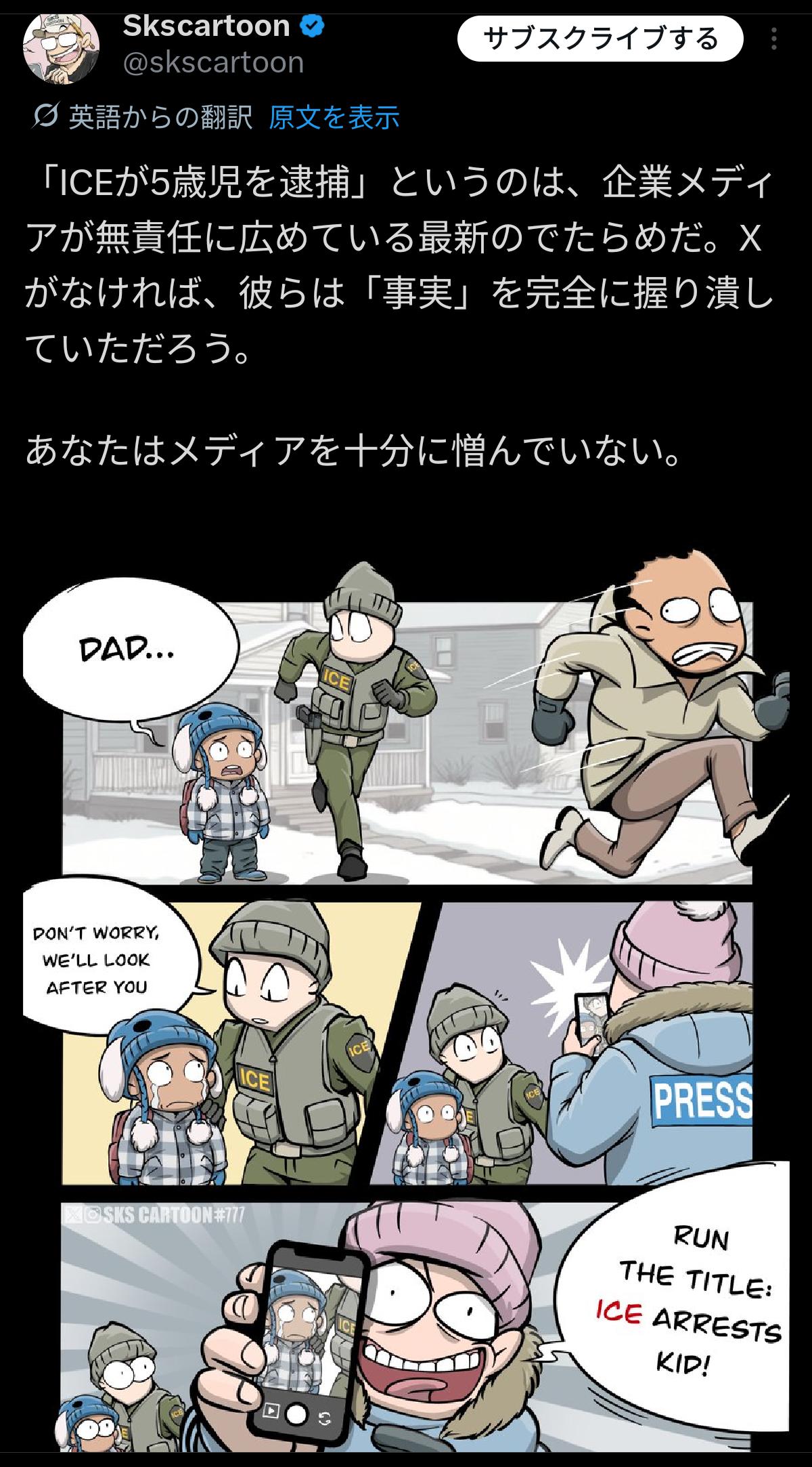 | … | 22426/01/25(日)12:41:07No.1395714841そうだねx1別件のICEが5歳児を逮捕したぞ!って騒いでた奴も |
