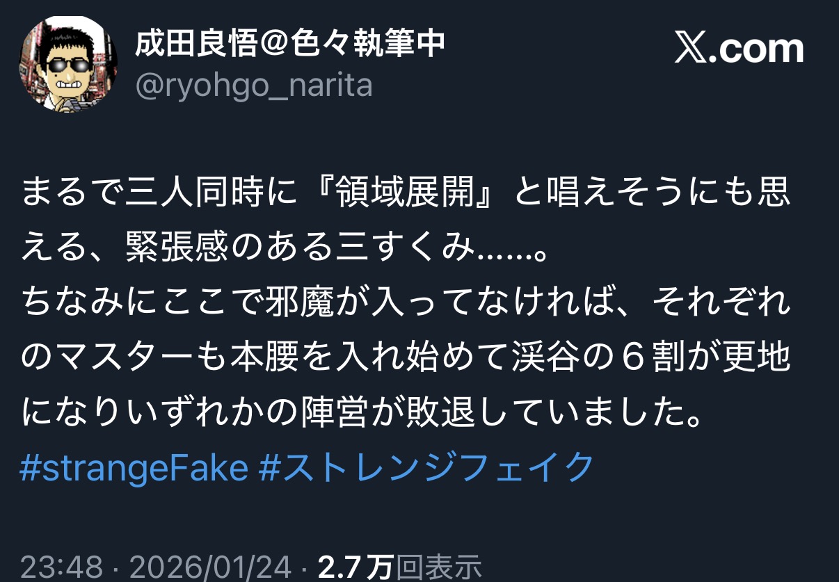 | … | 2726/01/25(日)13:41:26 ID:sJ55eN6YNo.1395731203そうだねx1https://x.com/striscribe/status/2015267520807043408 |