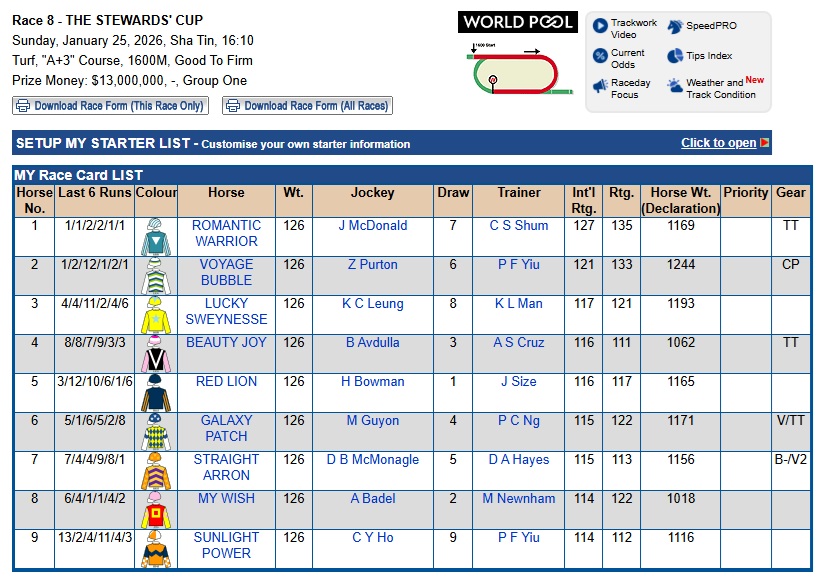 | … | 93226/01/25(日)17:27:00 ID:qvTvtqt.No.1395789530+>スプリントはカーインライジングというなんかもう考えるのもアホらしい奴が出ましたがマイル以上に関してはロマちらいる内に早く次の芽が出てくれ!って香港ファンが不安なるのもわかります |