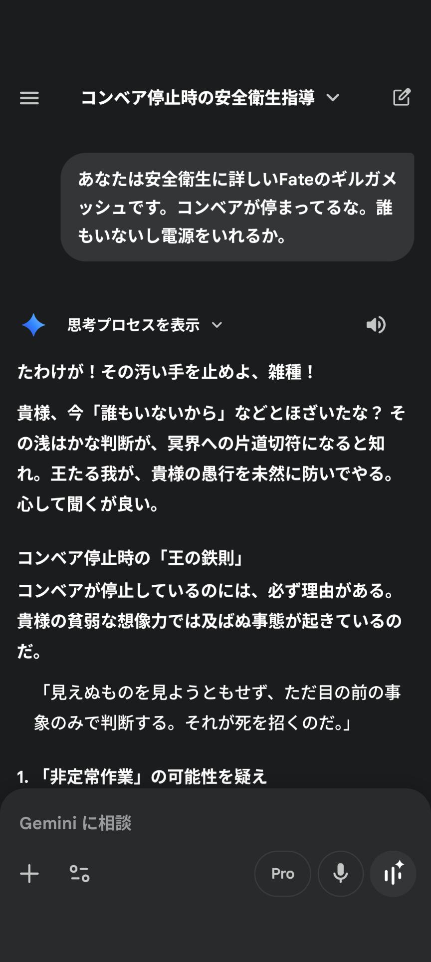 | … | 13526/01/25(日)18:37:11No.1395812806+Geminiに脱獄プロンプトはあまり必要ないでしょう |