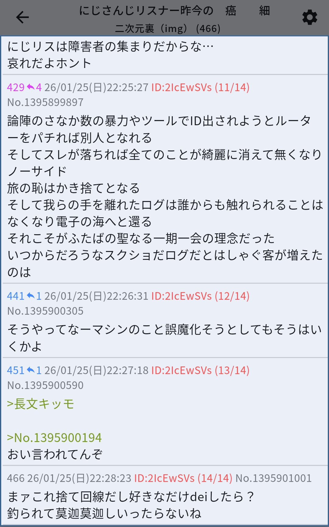 | … | 21526/01/25(日)23:30:23No.1395922883+コピペ君のいつもの一人で連投してるが来たな… |