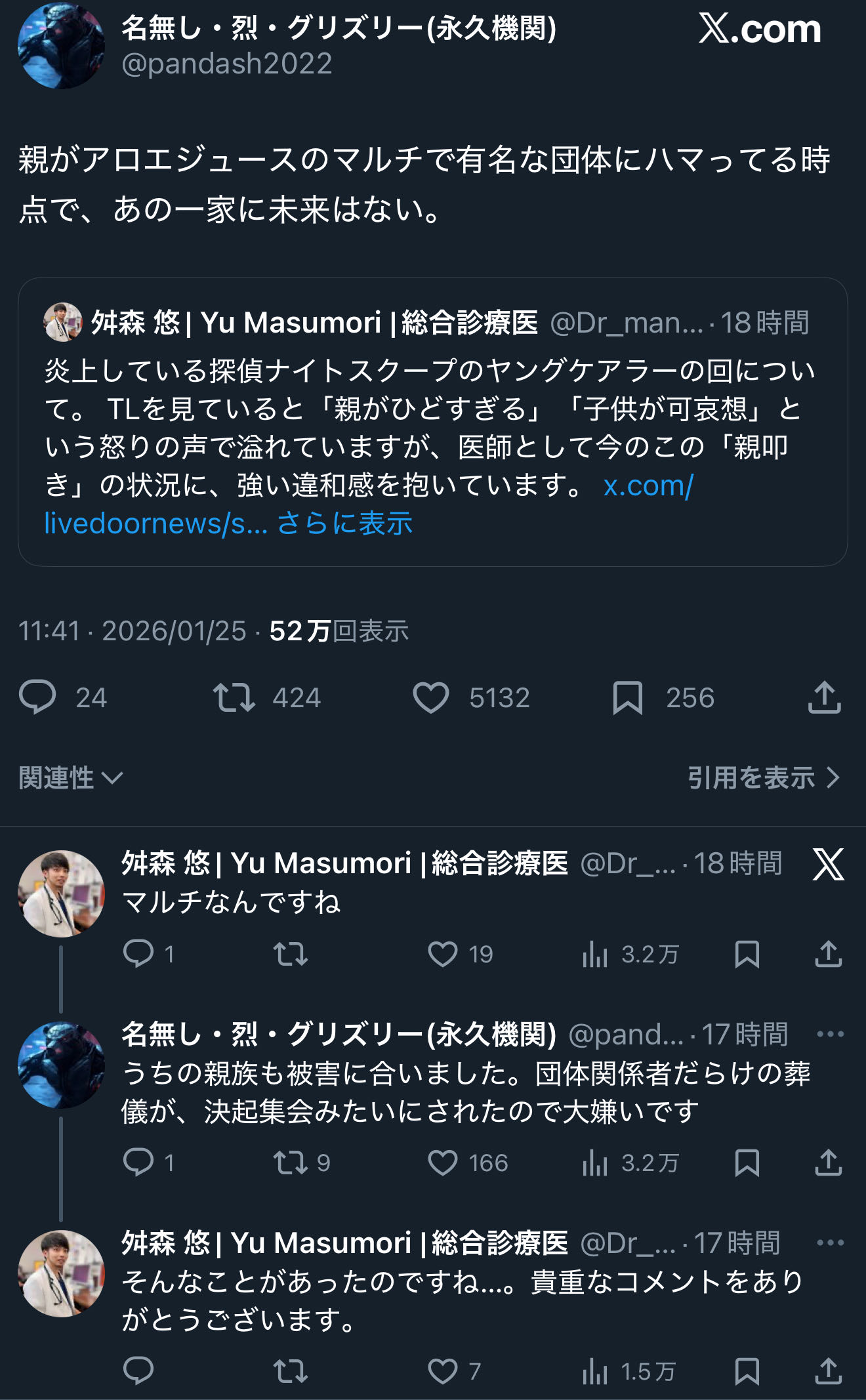 スレ画の家族は問題視されるべきヤングケアラー家庭にあたるものではない(多様性の範疇である)という文脈なのよ