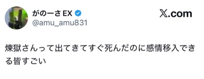 | … | 1226/01/26(月)11:54:42No.1396011491そうだねx1>月曜日なのに何で最新話の話しないの? |