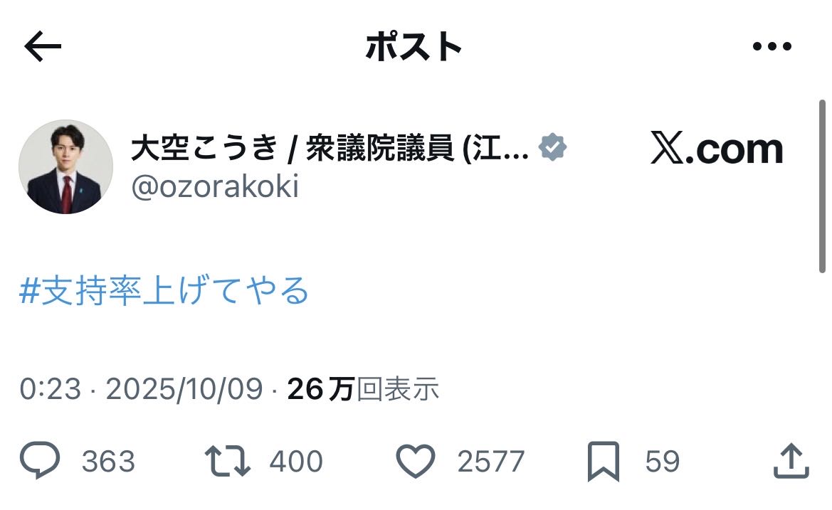 | … | 55726/01/26(月)13:14:13No.1396033148+🤓「政治?うーん、興味ナイ笑」 |