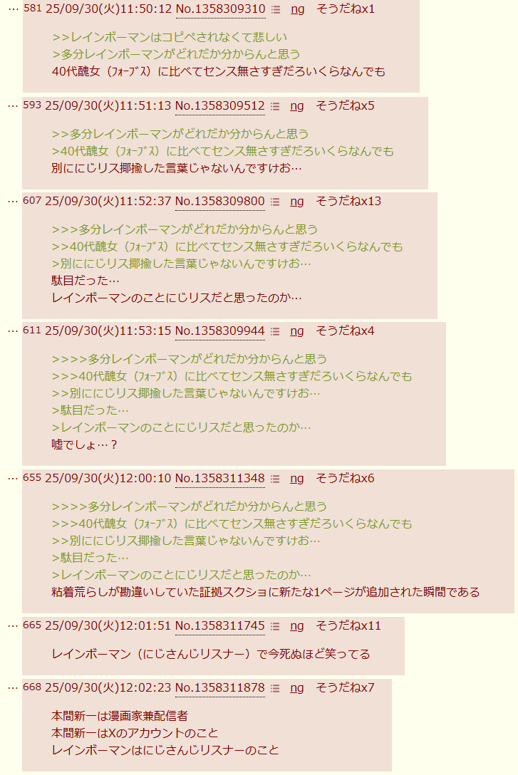 | … | 526/01/26(月)19:42:56No.1396121332そうだねx1>にじさんじ見てると認知症になるからね |